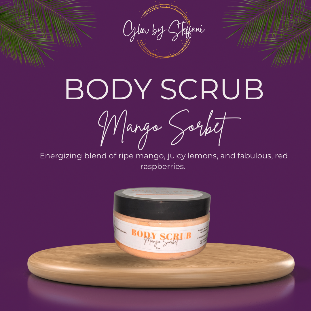 How to use: Apply to wet skin. Exfoliate by using circular motions. Rinse. Apply desired moisturizer. We recommend any Glow by Steffani nourishing and moisturizing body butters.