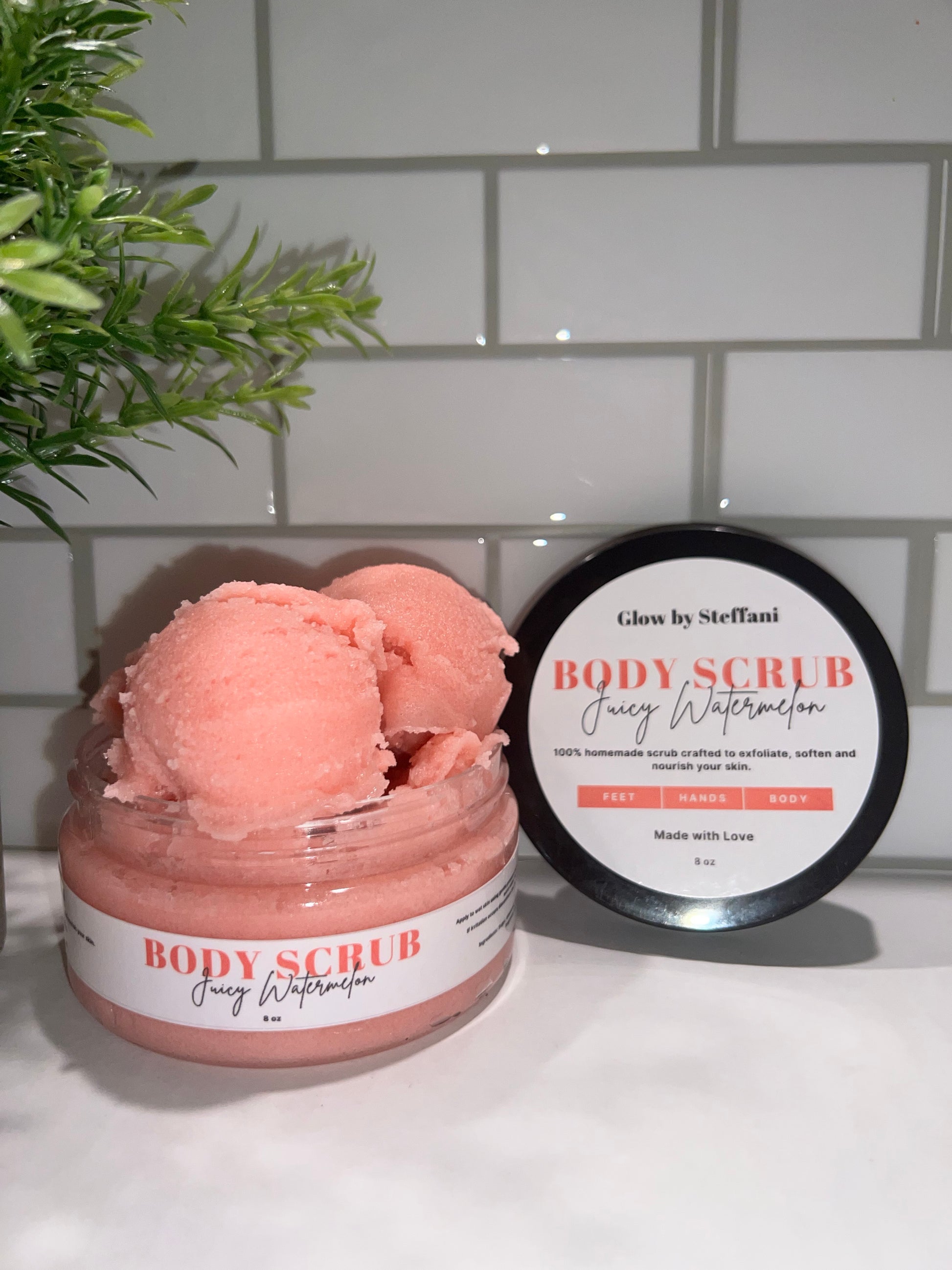 Exfoliate with your scrub then apply your matching glow butter for a lasting scent